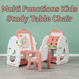 Multi Functions Kids Study Table Chair With Blocks Lego Book Self White Board Pink